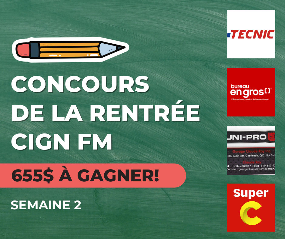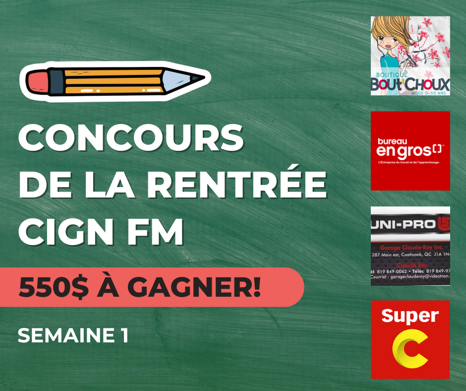 La rentrée débarque à CIGN fm et c'est plus de 1,200$ à gagner en prix de toutes sortes! À GAGNER [...]