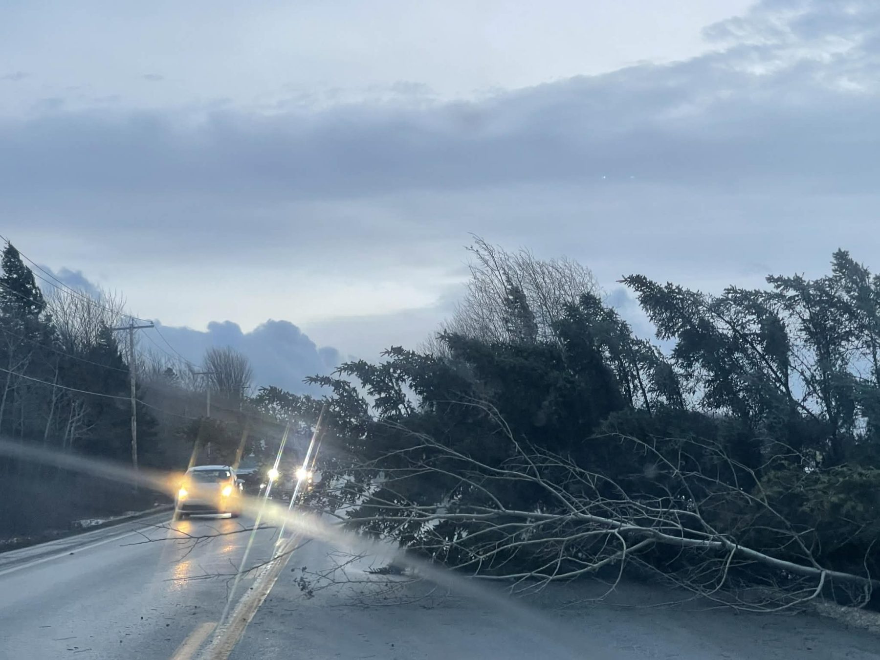 Sur la route 141 Sud, des arbres bloquent la circulation juste avant l’entrée de la municipalité de Coaticook.