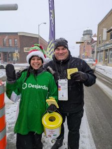 Le Centre d’action bénévole de Coaticook a recueilli un minimum de 36 146,34 $ hier lors de la Guignolée des médias à Coaticook. Le total pourrait être plus élevé, car les dons effectués sur le site web et ceux récoltés au IGA n’auraient pas encore été comptabilisés. Nous vous reviendrons avec le montant final lorsqu’il sera dévoilé ; l’organisation prévoyait l’obtenir à 12 h 00. Nous avons tenté de les rejoindre et attendons un retour d’appel. Pour l’ensemble de la journée, sur les cinq points de service, un total de 176 personnes bénévoles se sont mobilisées pour solliciter les citoyens dans la rue.
