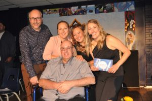 La soirée bénéfice, En direct de La Frontalière, l’automne dernier, a permis d’amasser la somme de 8445 $.  On se souvient qu’en septembre dernier, quelque 325 personnes sont sont données rendez-vous à La Frontalière dans le but de rendre hommage à Sylvain Véronneau, lequel a consacré 35 ans de sa vie à la planification des loisirs de cette institution scolaire. L’événement consistait à rappeler les moments forts de sa carrière.  Plus de 100 personnes se sont mobilisées pour l’organisation de cette soirée mémorable.  La somme d’argent sera entièrement remise à la Fondation de La Frontalière. Sur la photo, on aperçoit les principaux organisateurs, Sylvain Madore, Marie-Pierre Audet, Vicky Lévesque et Sonia Routhier en compagnie de Sylvain Véronneau.