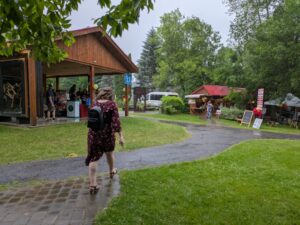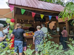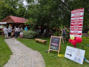 Un apéro de la microbrasserie Hop Station a rafraîchi les passants… jusqu’à l’arrivée de la pluie ! Certains habitués, comme Mme Michelle Lavoie, ne manquent jamais une occasion de venir au marché, même sous la pluie.