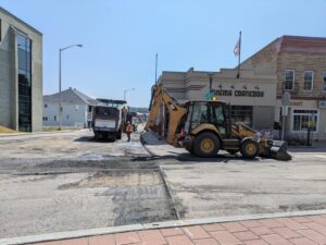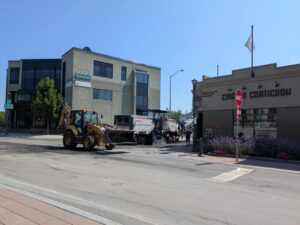 Les travaux de réfection de la route traversant le centre-ville de Coaticook battent leur plein. La circulation sur la rue Wellington est fermée dans un sens, tout comme devant le IGA. Avec la température grimpant à 29 °C, les travailleurs sont tout de même actifs près des chaudes machines. Quelques ralentissements sont à prévoir, particulièrement à l’intersection des rues Child et Wellington. Consultez le plan ci-dessous pour connaitres les zones concernées par les travaux d’asphaltage.