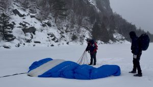 Contrairement à ce que l’on pourrait croire, le BASE jumping se pratique à l’année. L’hiver offre même certains avantages, comme des zones d’atterrissage sur des lacs gelés ou une couche de neige qui peut masquer des obstacles rocheux. « Personnellement, je préfère sauter en t-shirt, mais l’hiver a ses avantages », admet M. Noël, qui pratique autant sur la Côte-Nord qu’ailleurs au Québec.