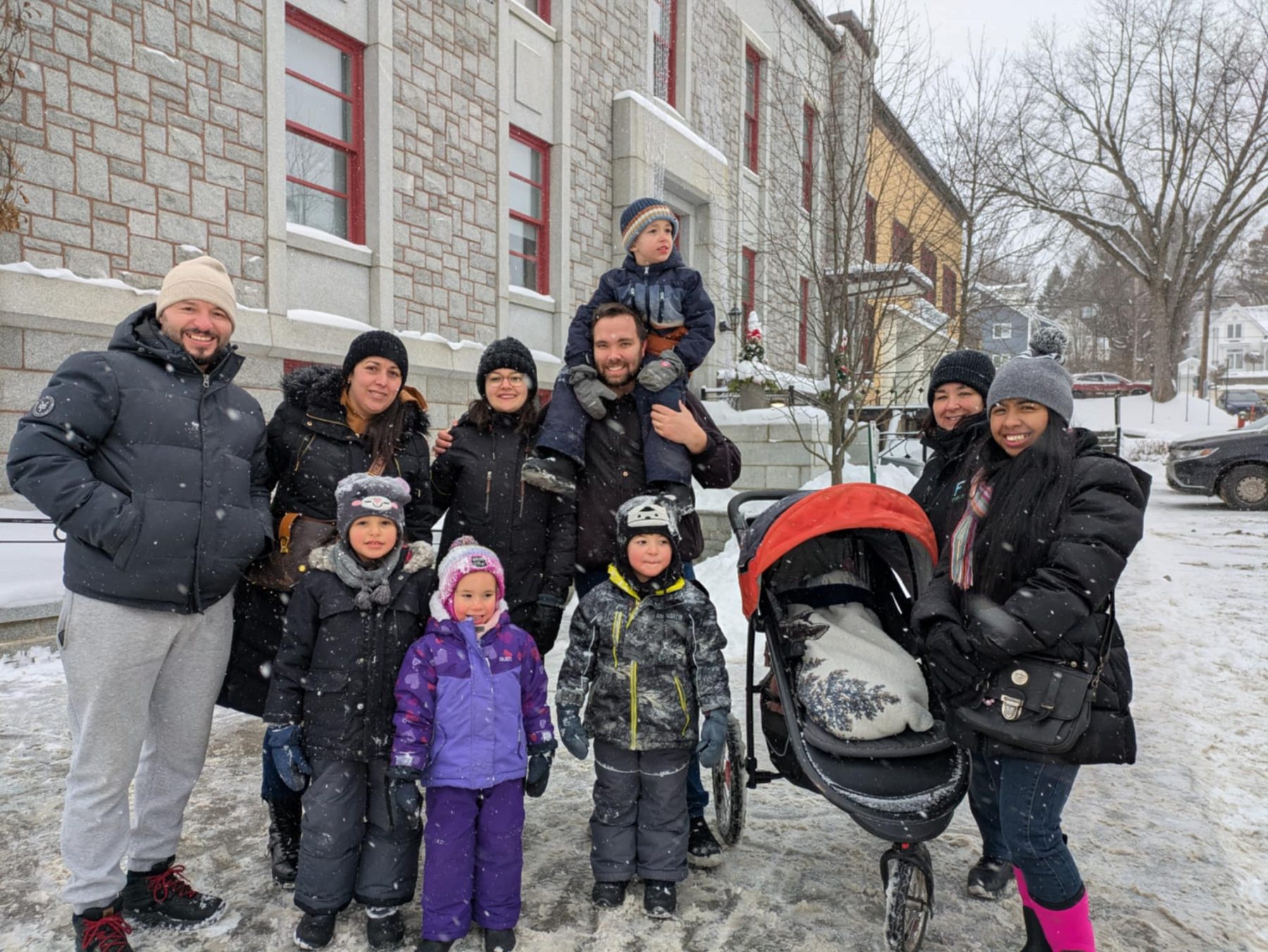 Sur la photo, de gauche à droite : Mouloud Aggar et sa conjointe Yennek Hassina, leurs enfants Ilina (première enfant à gauche) et Walid (à gauche du carrosse), Taous Salahi (belle-sœur de Fitahiana) et Guillaume Jubinville (conjoint de Taous). Sur ses épaules se trouve leur fils Aksel, et, vêtue de mauve, leur fille Ève. Derrière le carrosse, Sonia Jubinville, et complètement à droite, Fitahiana Jubinville.
