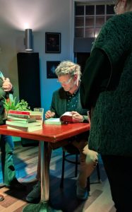 La salle était comble, et les derniers arrivés ont dû jouer à la chaise musicale pour obtenir leur place. Pour se transporter dans l’ambiance du roman, un nuage de fumée blanche artificielle emplissait la pièce jusqu’au début de l’entrevue menée par Chrystine Brouillet avec l’auteur affranchi. Parenthèses de précisions ou d’anecdotes à l’occasion, et explications passionnées du pourquoi et du comment : les rires fusaient d’une réponse à l’autre pour se dire : « C’est bien notre Benoît, ça! » Une vague d’amour immense, selon M. Bouthillette, qui a retrouvé le jeune homme en lui en révisant ses pages, maintenant tel un grand frère.