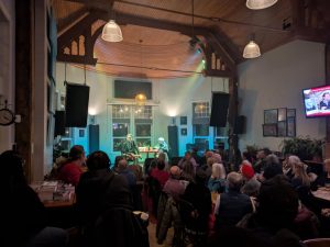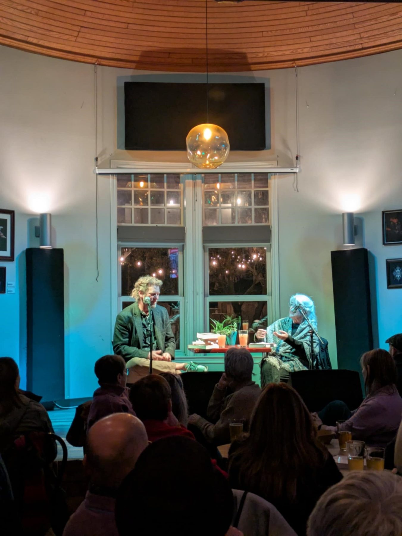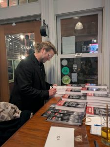 La salle était comble, et les derniers arrivés ont dû jouer à la chaise musicale pour obtenir leur place. Pour se transporter dans l’ambiance du roman, un nuage de fumée blanche artificielle emplissait la pièce jusqu’au début de l’entrevue menée par Chrystine Brouillet avec l’auteur affranchi. Parenthèses de précisions ou d’anecdotes à l’occasion, et explications passionnées du pourquoi et du comment : les rires fusaient d’une réponse à l’autre pour se dire : « C’est bien notre Benoît, ça! » Une vague d’amour immense, selon M. Bouthillette, qui a retrouvé le jeune homme en lui en révisant ses pages, maintenant tel un grand frère.